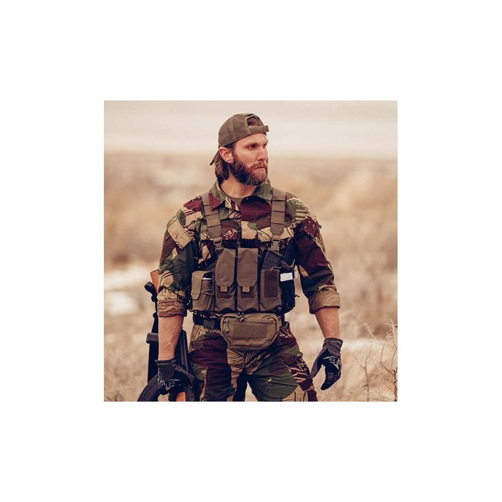 Chicom Chest Rig je jednoduchá, modulárna platforma pre nosenie výstroja počas taktických operácií. Navrhnutý pre pohyb v stiesnených priestoroch a CQB prostredí, poskytuje ľahký a efektívny spôsob prenášania munície a výstroja bez zbytočného objemu.
