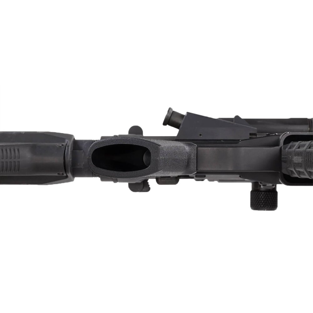 Strmší uhol zlepšuje kontrolu zbrane v úzkych priestoroch a znižuje únavu pri dlhodobom držaní. Vďaka tenkému profilu bez „bobrieho chvosta“ je ideálna aj pre strelcov s menšou dlaňou.