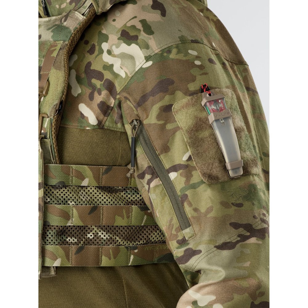 - Daisy chain hard points (in upper arm pockets) allowing for the tying off of mission essential equipment