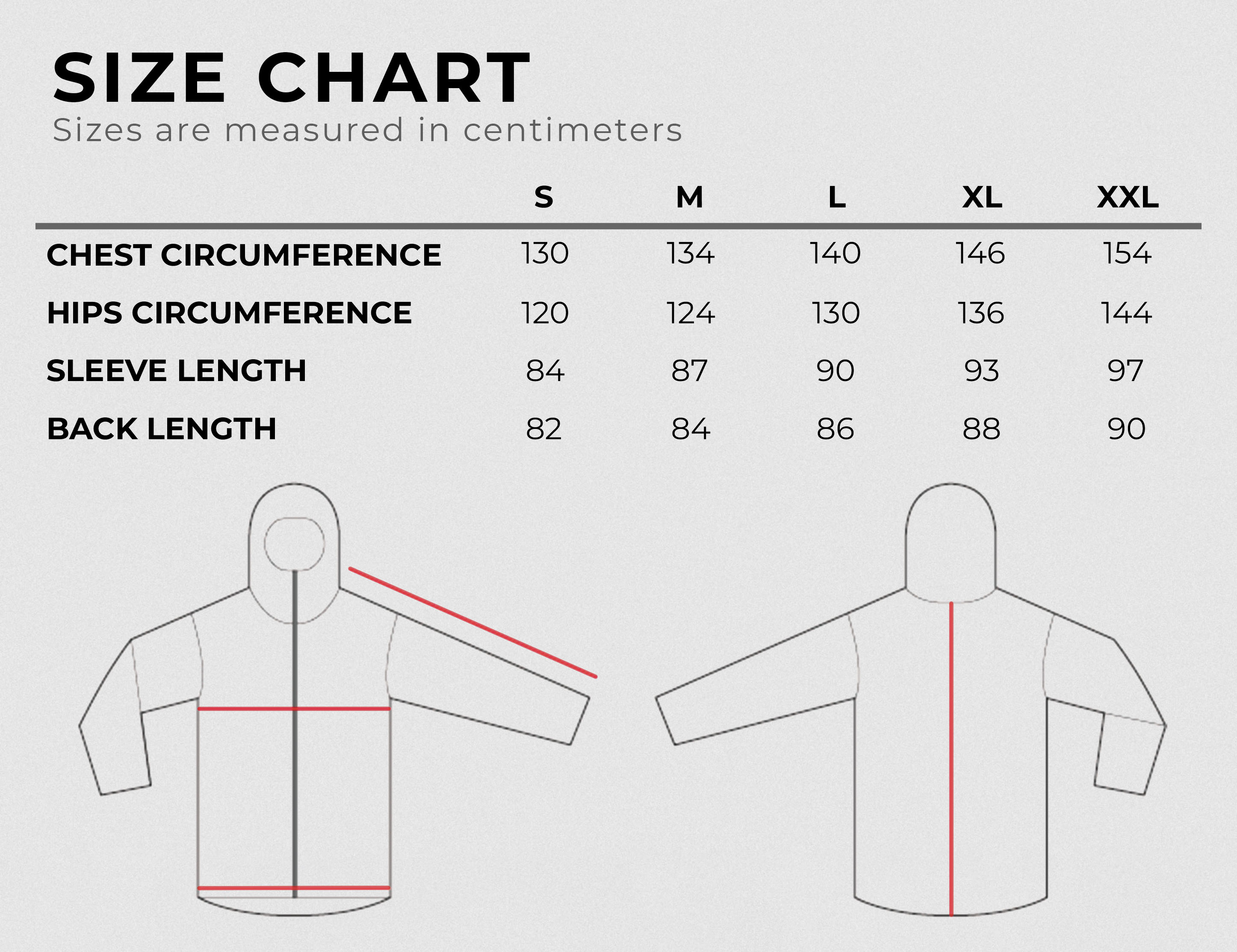 * The jacket is photographed in size L on a person 187 cm tall with a chest circumference of 102 cm.