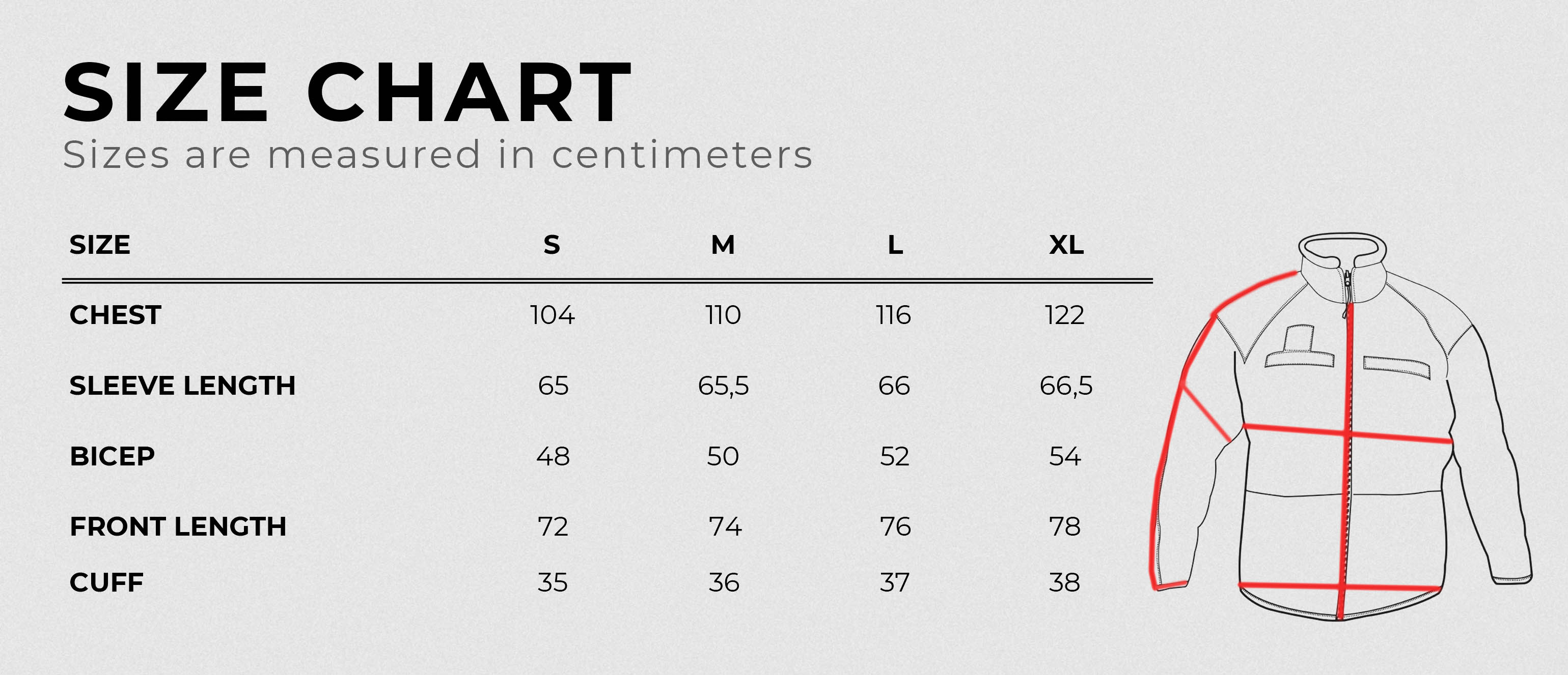- Adjustable cuffs with hook&loops