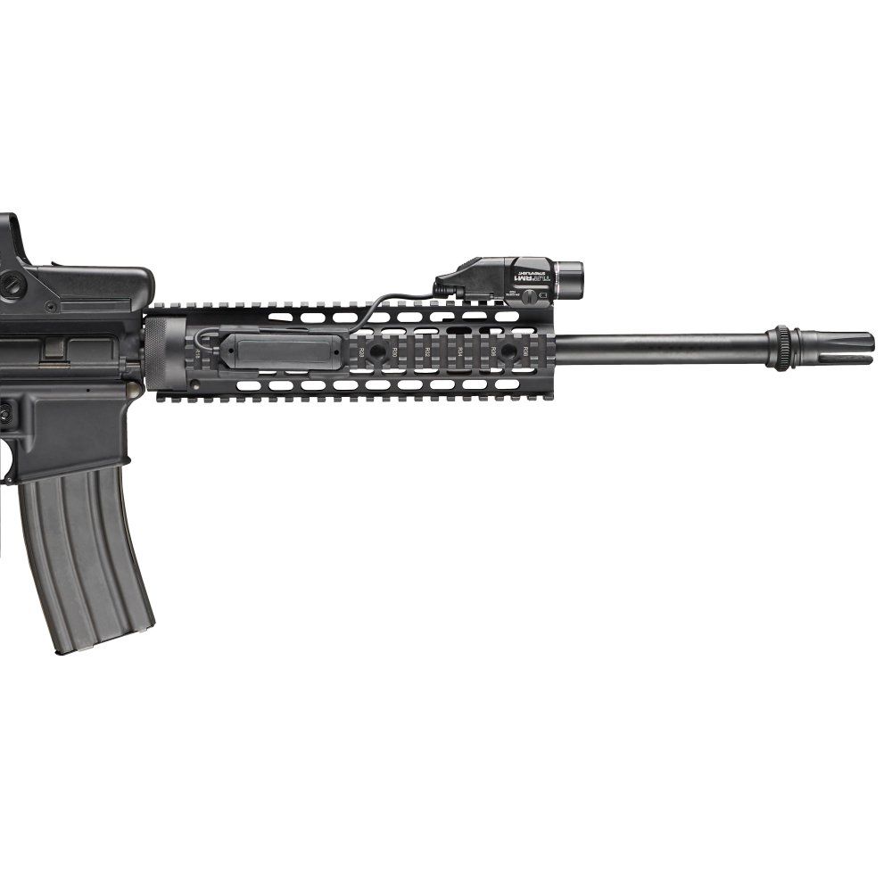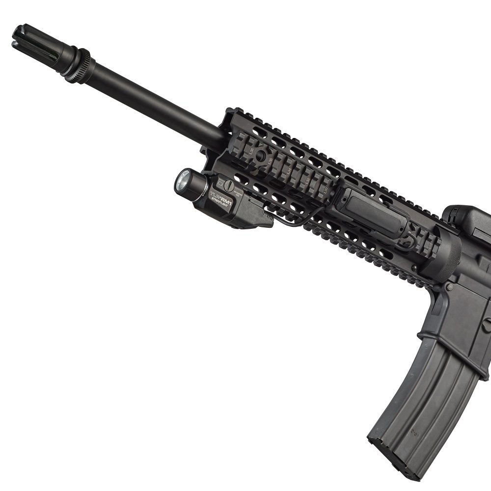 The compact and lightweight Streamlight TLR RM 1 weapon light is designed for long guns with MIL-STD-1913 or NATO rails. Delivering 500 lumens and 11,000 candela, it offers a beam distance of up to 210 m. The optimized TIR optic provides a concentrated hotspot with reliable peripheral illumination.