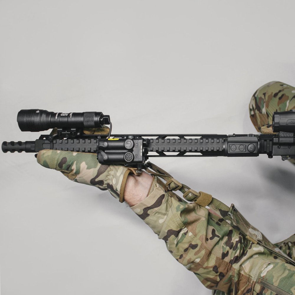 The LE117IR is a class IIIa IR (infrared) laser aiming device designed for use with night vision devices on long gun applications. The LE117IR features a grade 5 titanium housing with a quick release Picatinny rail mount. The LE117IR is powered by a single CR123 battery which can provide up to 5000 hours of battery life.