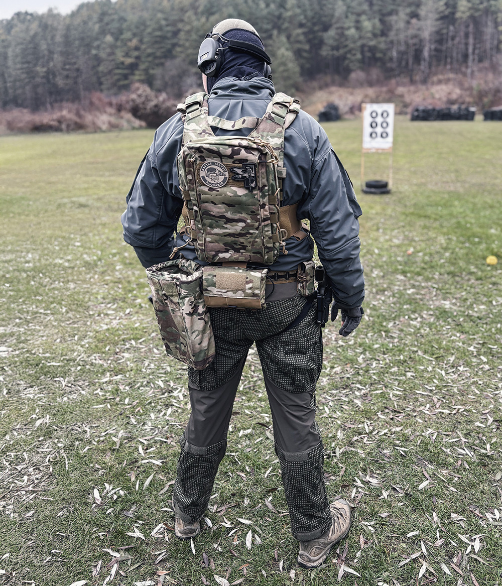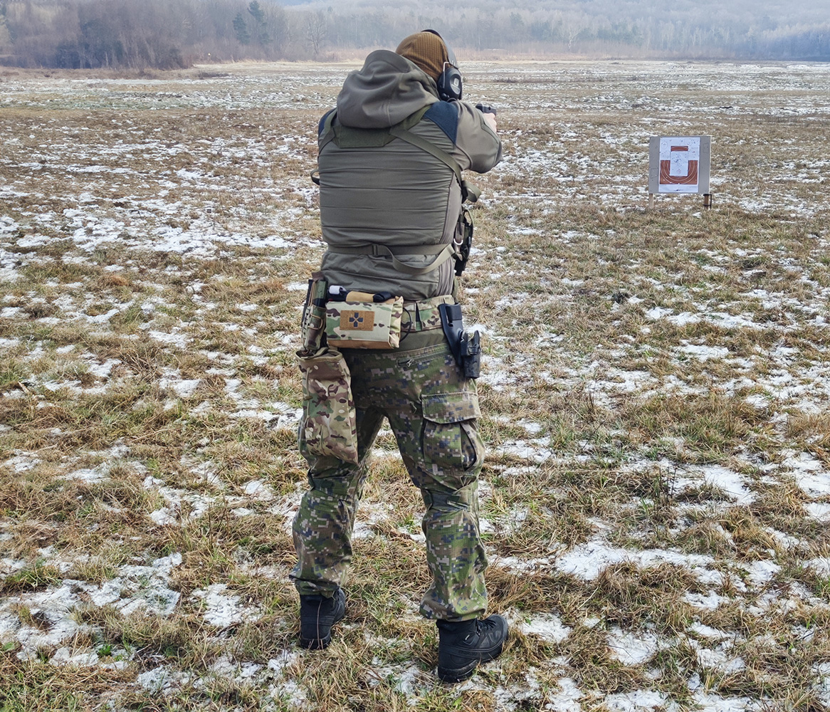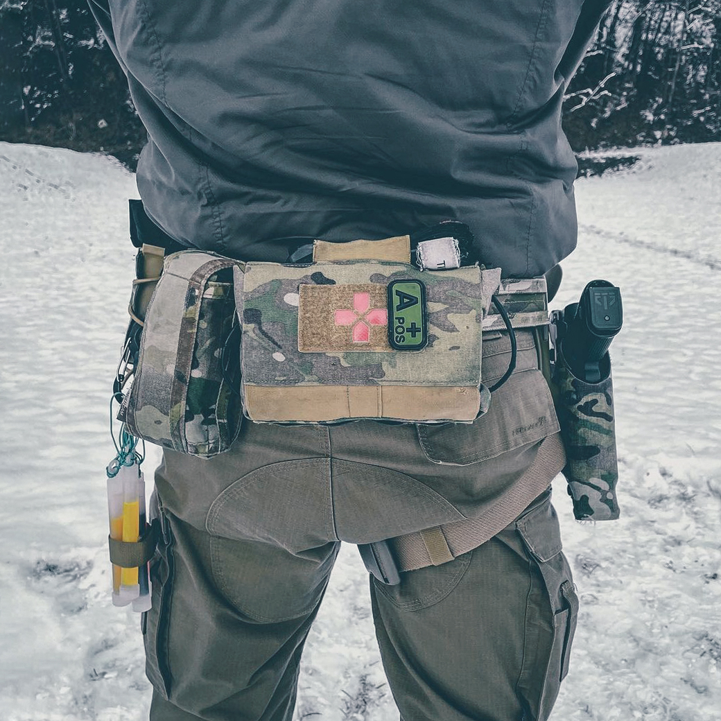 BTG IFAK is characterized by a low profile (thickness) and when placed on the back of the combat belt does not restrict mobility, does not interfere with sitting, use with a plate carrier or backpack.