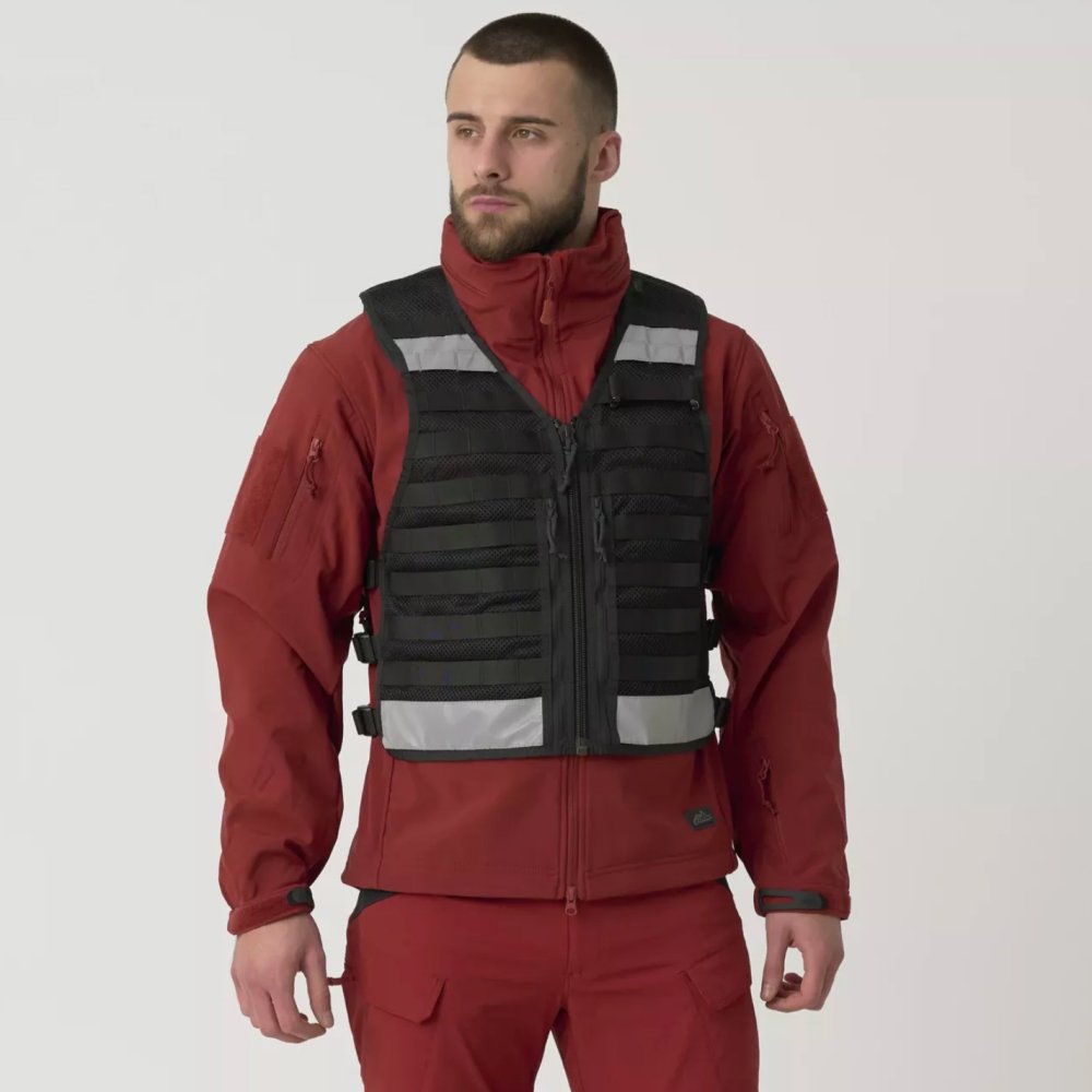 The SAR (search and rescue) Vest is designed for medical rescuers. Constructed with a mesh material and fully covered with MOLLE/PALS webbing, this vest is both breathable and lightweight, allowing for extensive customization. The SAR Vest features large, highly visible reflective elements, ensuring the rescuer's visibility in poor weather conditions or after dark.