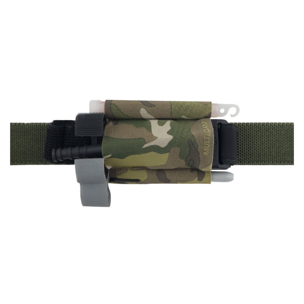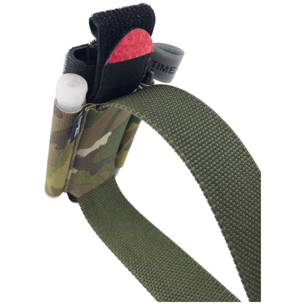 Tourniquet holder with two smaller compartments which have two functions for markers, chemlights or similar objects.