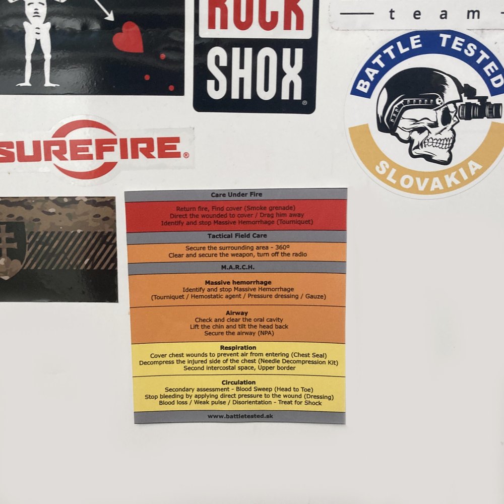 Basic Tactical Combat Casualty Care (TCCC) - Tactical combat casualty care on one sticker.