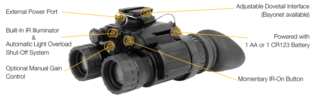 The device has an external power port that allows the NVG to be powered using a USB cable.