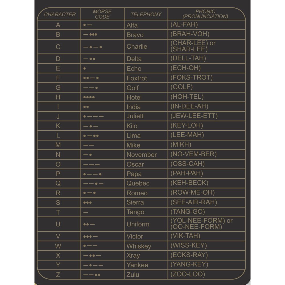- Call sign table