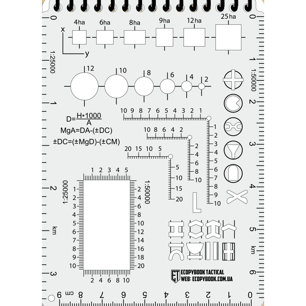The notebook contains procedures and tasks for the intelligence commander in performing various combat situations. It contains tools for performing tasks such as procedures for issuing orders, the commander's job description, control signals, orientation and observation procedures, call signs, various task tables as well as rulers with NATO symbols and a protractor, and much more.