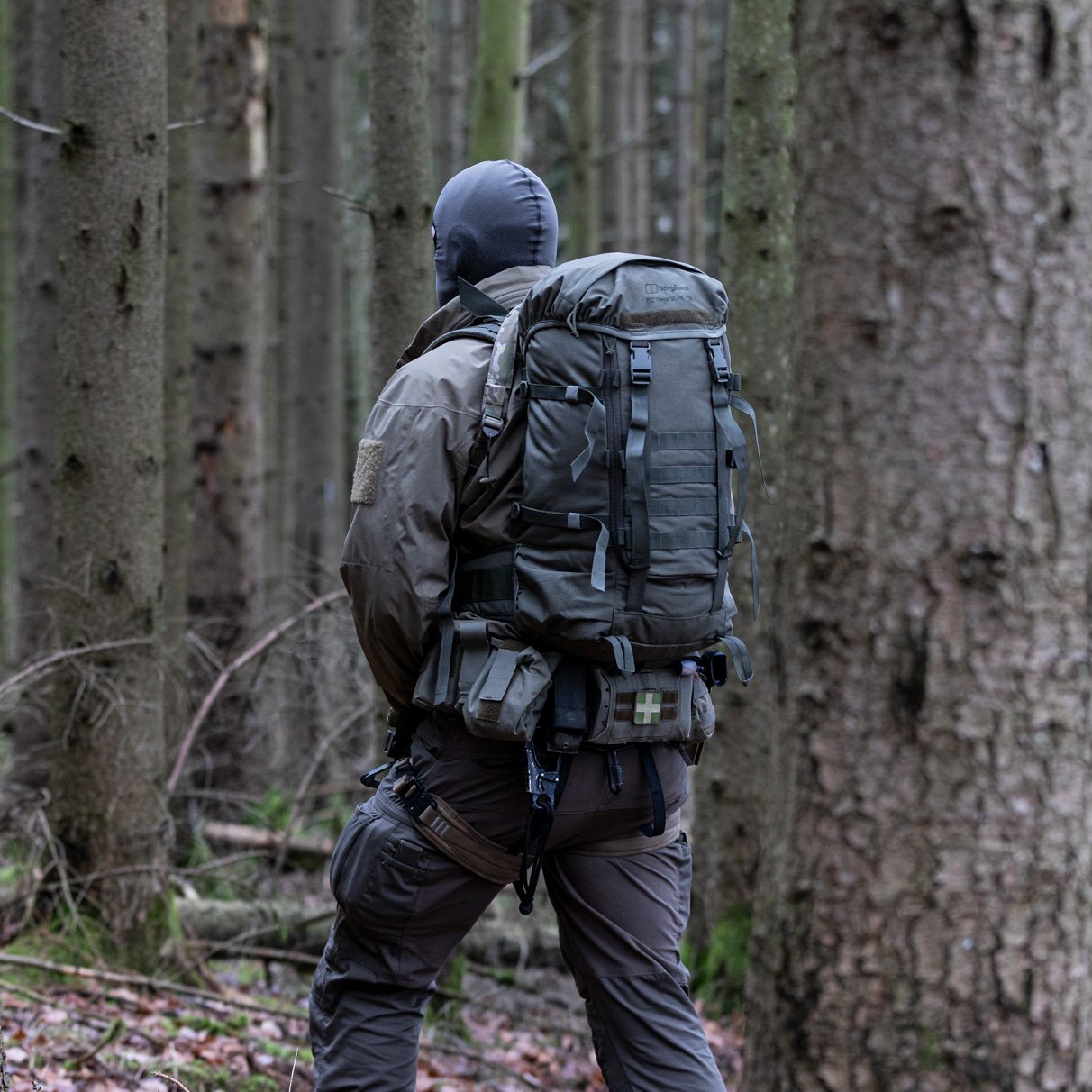 The backpack is constructed from Cordura 560 DTEX, a highly resilient material with an infrared (IR) coating to improve concealment from night vision detection. The main compartment features Front Access (FA) for quick, convenient access from the front, while also allowing top entry. Ergonomically shaped shoulder straps and a ventilated back panel system ensure comfort, even during extended use.