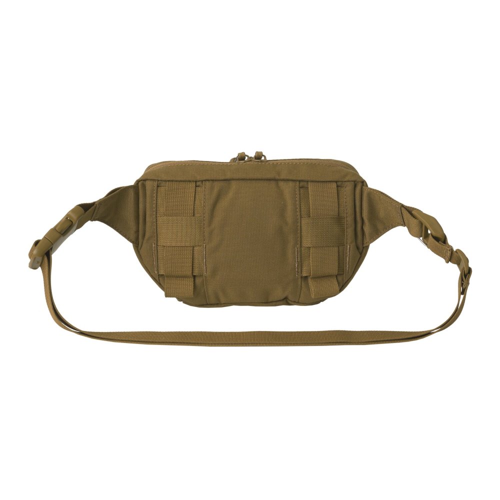 Vrecko sa upevňuje pod predný panel nosiča pomocou odnímateľného suchého zipsu (hook & loop). V prípade potreby ho možno doplniť o bedrový popruh a používať ako samostatnú ľadvinku. Je vyrobené z odolného materiálu Cordura 100 % nylon, ktorý zaručuje dlhú životnosť a odolnosť voči mechanickému opotrebovaniu.