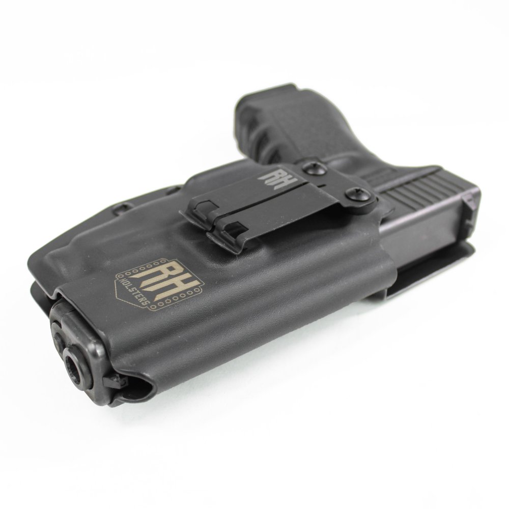 RH Holsters IWB Sharky je prémiové kydexové puzdro určené pre pravostranné skryté nosenie Glocku 19. Navrhnuté pre maximálny komfort a efektívne skrytie zbrane, či už nosíte v klasickej IWB pozícii alebo v appendix carry. Vďaka presnému vákuovému lisovaniu má puzdro presne vytvarovaný tvar podľa konkrétneho modelu zbrane a je vyrobené z jedného kusu 2 mm hrubého Kydexu pre vysokú pevnosť a nízky profil.