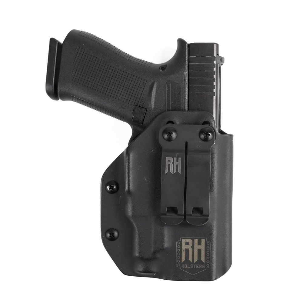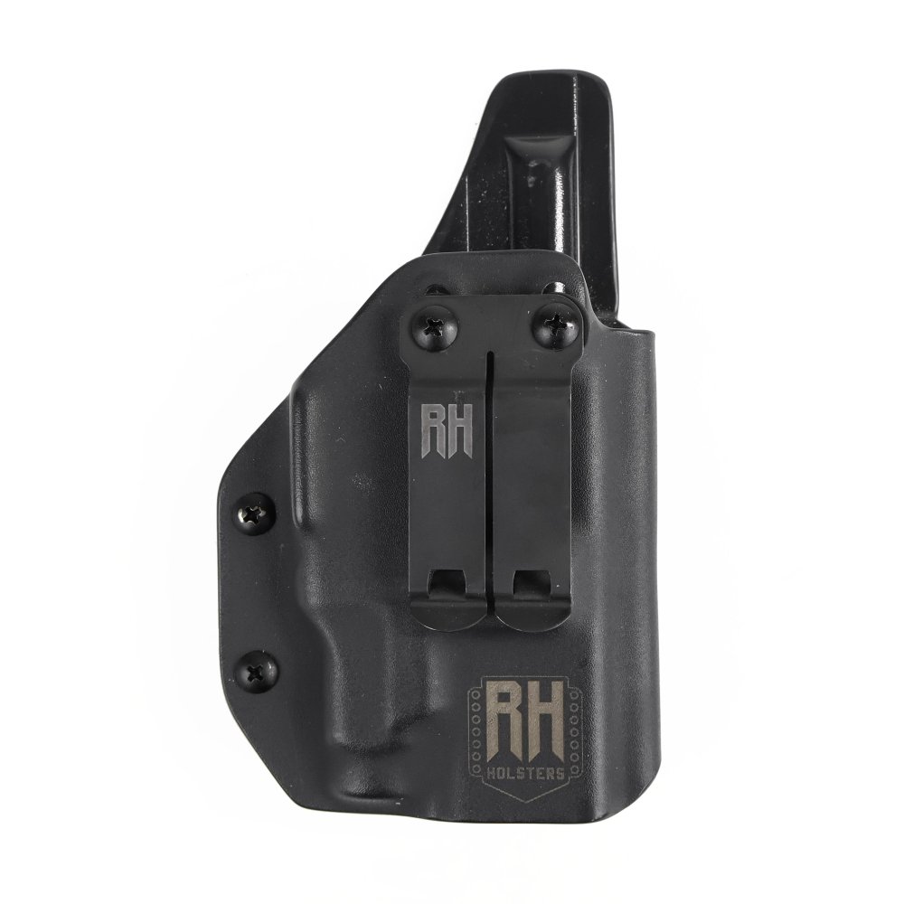 RH Holsters IWB Sharky je prémiové kydexové puzdro určené pre pravostranné skryté nosenie Glocku 43/43x s railom aj G48/G48 rail. Navrhnuté pre maximálny komfort a efektívne skrytie zbrane, či už nosíte v klasickej IWB pozícii alebo v appendix carry. Vďaka presnému vákuovému lisovaniu má puzdro presne vytvarovaný tvar podľa konkrétneho modelu zbrane a je vyrobené z jedného kusu 2 mm hrubého Kydexu pre vysokú pevnosť a nízky profil.