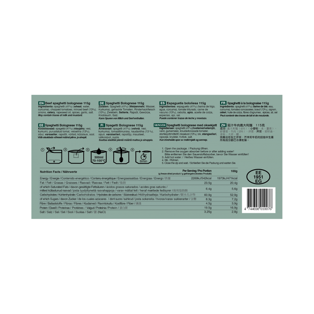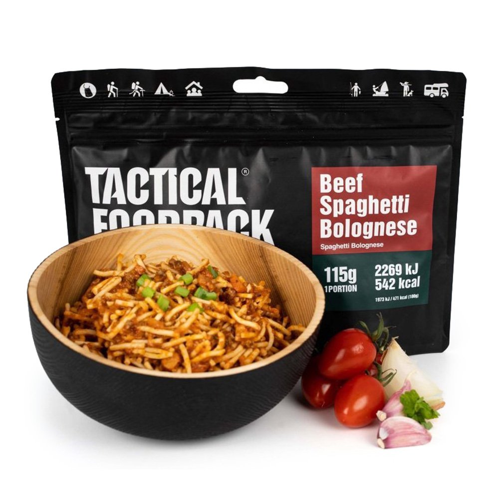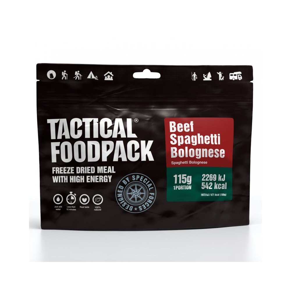Tactical Foodpack Beef Spaghetti Bolognese je výdatné, chutné a ľahké jedlo navrhnuté pre outdoor, prežitie a krízové situácie. Mrazom sušená porcia s obsahom hovädzieho mäsa vám zabezpečí energiu aj v tých najnáročnejších podmienkach.
