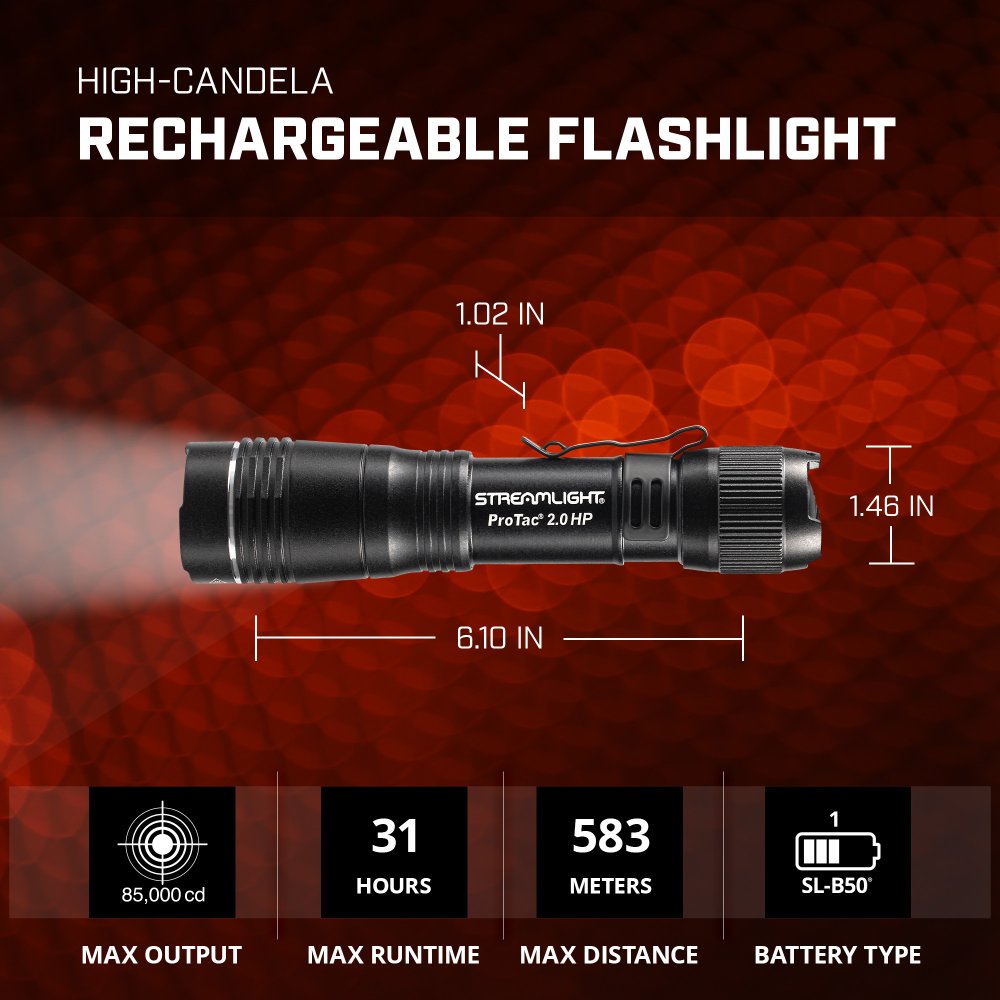 Streamlight ProTac 2.0 HP je vysokovýkonné taktické ručné svetlo optimalizované na kombináciu dlhého dosvitu a silného periférneho osvetlenia. Produkuje až 2 000 lúmenov a 85 000 kandela, čo umožňuje efektívne osvetlenie cieľov na veľké vzdialenosti.