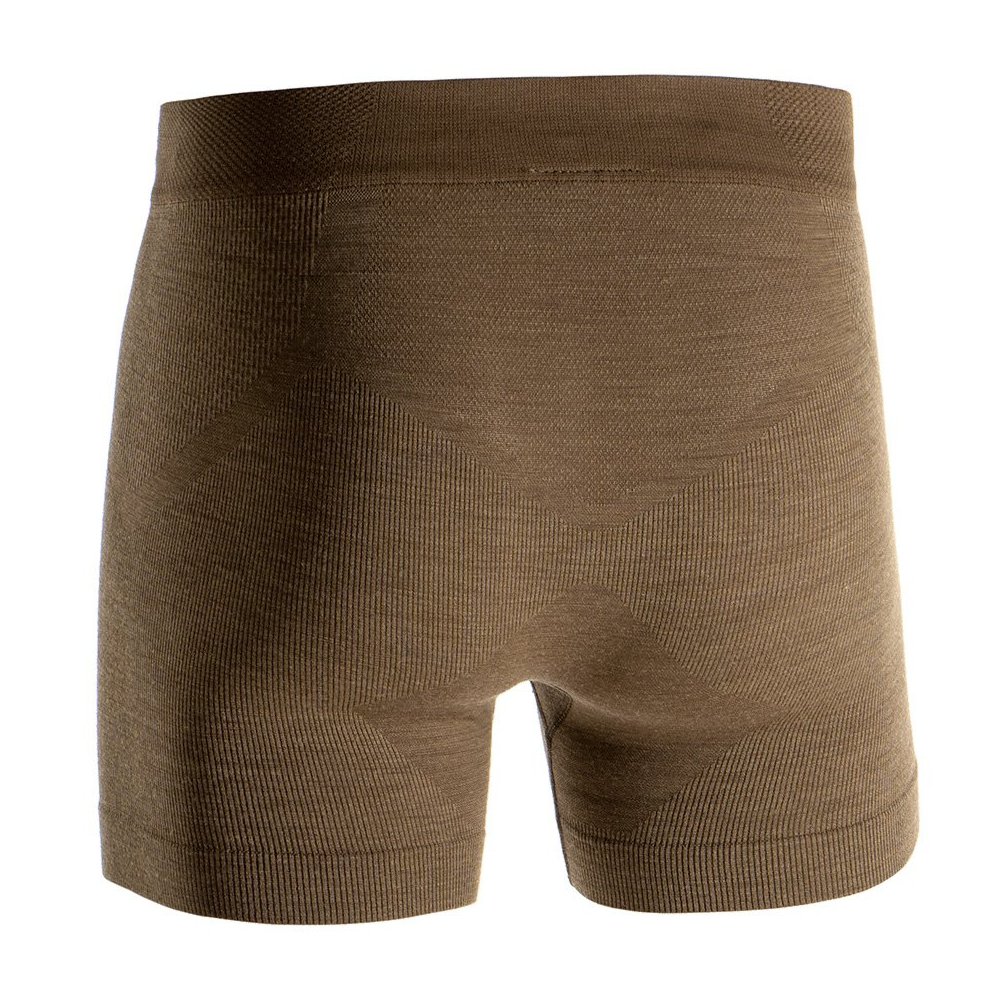 Boxerky majú priliehavý anatomický strih, ktorý eliminuje riziko odierania počas pohybu. Ploché švy a široký elastický pás poskytujú vysoký komfort aj pri celodennom nosení, vrátane nosenia pod taktickou výstrojou. Strategicky umiestnené zóny zvyšujú priedušnosť a funkčnosť v kľúčových oblastiach.