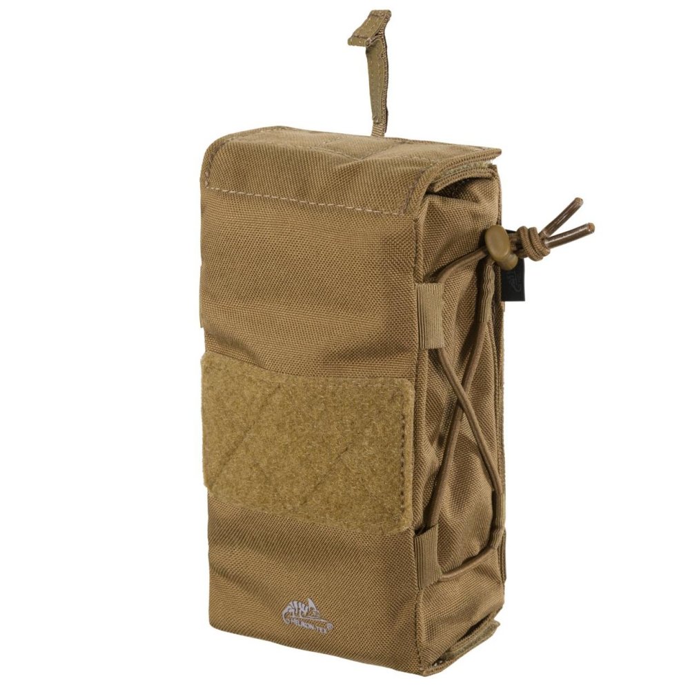 Puzdro je možné nosiť vertikálne aj horizontálne, upevniť cez MOLLE/PALS alebo priamo na opasok do šírky 50 mm. Vonkajšia kompresná šnúra umožňuje uchytenie škrtidla alebo stlačenie obsahu pre lepšiu stabilitu.