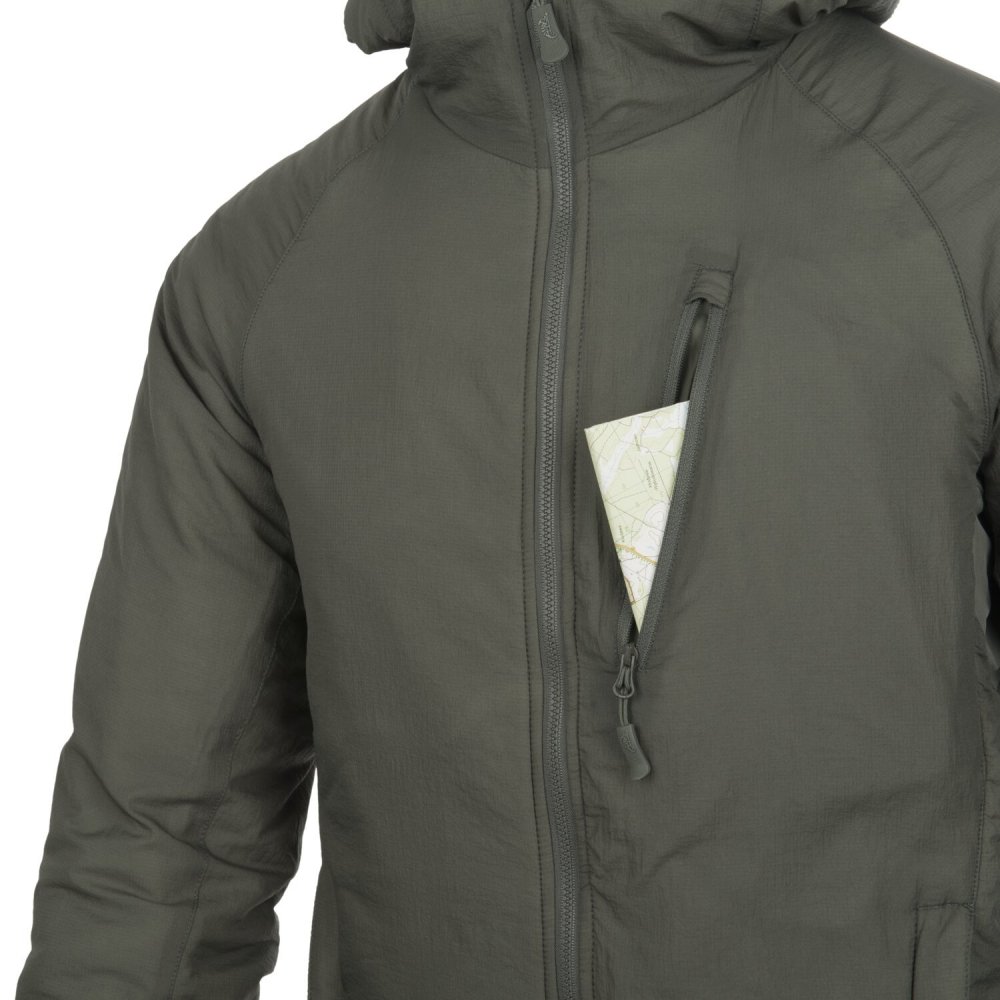 Wolfhound Hoodie Jacket od Helikon-Tex je ľahká a zateplená bunda s kapucňou, vhodná ako vrchná vrstva alebo kompaktná záložná bunda do batohu. Poskytuje výborný tepelný komfort bez zbytočnej hmotnosti, čo ju robí výbornou voľbou pre taktické a outdoorové aktivity v chladnom počasí.